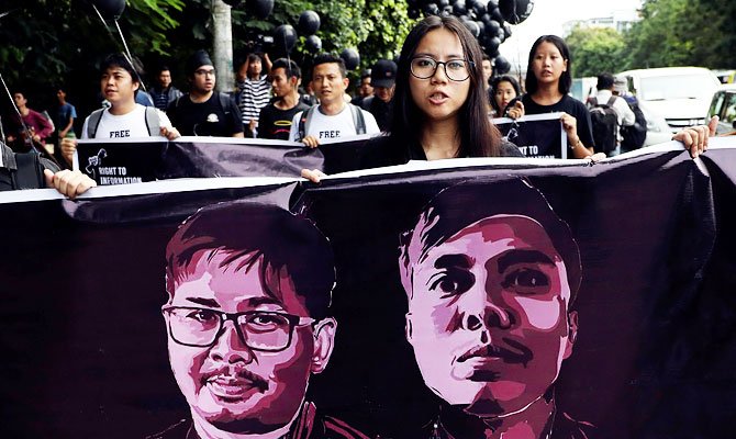 न्यूज एजेंसी रायटर के दो पत्रकारों को म्यांमार में सात साज की सजा सुनाई गई है। दोनों को रोहिंग्या पर रिपोर्टिंग के दौरान गोपनीयता भंग करने का आरोप है। ऐसे में इसे प्रेस की आजादी पर हमला करार दिया गया है। रॉयटर्स ने पत्रकारों को मिली सजा की कड़ी आलोचना करते हुए उनके तत्काल रिहाई की मांग की है। म्यांमार में संयुक्त राष्ट्र प्रतिनिधि ने भी इस घटना को निंदनीय बताते हुए इसे प्रेस की आजादी पर आघात बताया है। दुनिया भर में अभिव्यक्ति की आजादी के समर्थकों ने इस घटना की निंदा की है।